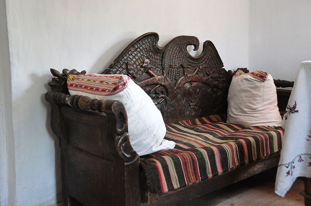 Также интерьером дома были скамейки, кресла, кушеток с одеждой, бамбетель. Последнее, это такая деревянная кровать-диван. Оно использовалось для сна ночью и для сидения днем. В Галиции его использование приходится на XIX – нач. ХХ ст. На бамбетель клали сено и на нем спали. В то же время он выполнял функцию сундука. Ведь крышкой-возрастом прикрывали выдвижной ящик лежак, вымащиваемый соломой.