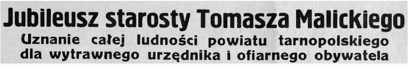 Вот что писал корреспондент газеты из Тарнополя: «Тарнопольский уезд отметил 10-летие обязанностей тарнопольского старосты Томаша Малицкого. Церемония собрала […] огромное количество сельского населения (более 2000 человек), представителей всех органов власти и учреждений, а также общественных, экономических и культурных организаций». Один из крестьян, присутствовавший на церемонии, заявил: «Огромные толпы собравшихся спонтанно сельских людей ярко свидетельствуют о гражданской позиции юбиляра, за то, что он всем сердцем отдается потребностям народа, сегодня этот народ воздает ему своим участием здесь и искренней приверженностью. В течение 10 лет староста Малицкий в своей деятельности не только ограничивался служебной деятельностью, но всегда был инициатором и искренним поборником всех действий с целью улучшения судьбы людей и села. Поэтому он крепко связал этот народ с нашей молодой государственностью, создав в массах большое доверие к органам общей и местной государственной администрации».