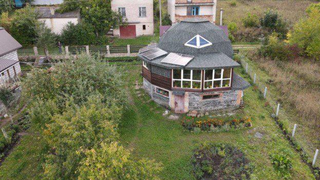 Оригінальний будинок у вигляді півкулі Володимир Сеньків збудував своїми руками. Будівля розташована в дачному районі села Петрика, де близько є ліс та сад, тому можна проводити багато часу на свіжому повітрі.