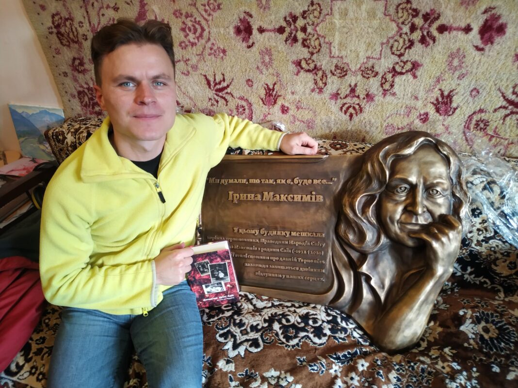 Тернополянка Ірина Максимів померла у липні 2020 року. Краєзнавець Тарас Циклиняк і митець Дмитро Малярчук працювали над створенням пам’ятного знаку. Вони вважають, що ця людина повинна бути увіковічненою в історії. Автори багато вклали матеріального та духовного у меморіальну дошку. Кажуть, що кожен тернополянин має знати про те, чим займалася за життя довгожителька Ірина Максимів.